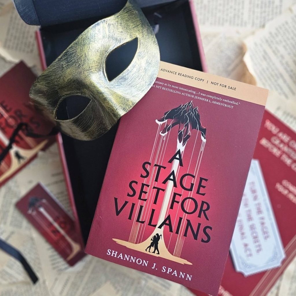 A Stage Set For Villains [Buy Bookshop Amazon LibroFM] is told from Riven’s perspective, starting with an incident in her childhood. A Player, or immortal actor of the playhouse curses her when she’s going to get marked, which will prevent her from being able to lie. That curse is slowly killing her, so now, at 18, she decides to sneak into the Playhouse to infiltrate the contest to steal one Player’s immortality. However, she doesn’t count on the Lead Player, Jude, taking an interest her and complicating her plans.